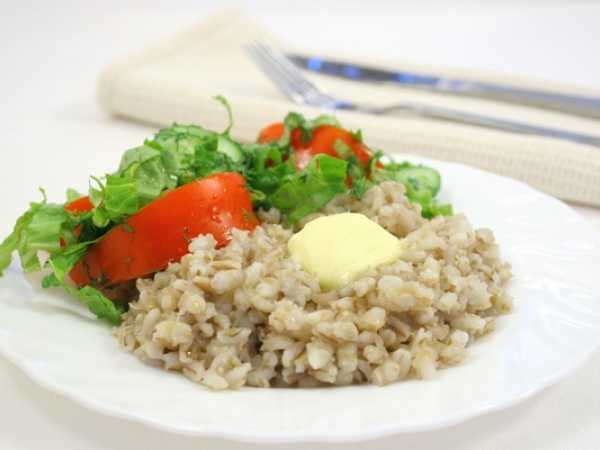 Подаем перловую кашу с куриными сердечками теплой с салатом. Приятного аппетита!