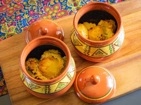 В горшочки уложите драники, чередуя с луково-мясной начинкой. Налейте примерно до половины горшочка бульона. Укройте крышечками. Разогрейте духовку до 200 градусов. Запекайте около 15-25 минут.