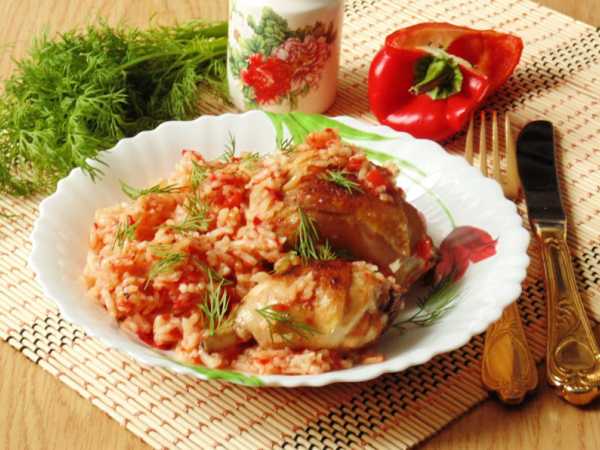 Затем снять крышку (фольгу) и еще запекать минут 10. При необходимости добавить еще кипятка, чтобы рис не получился сухим.