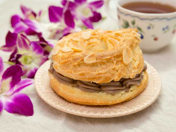 Разрезаем эклеры снизу, но не до конца, и начиняем кремом.