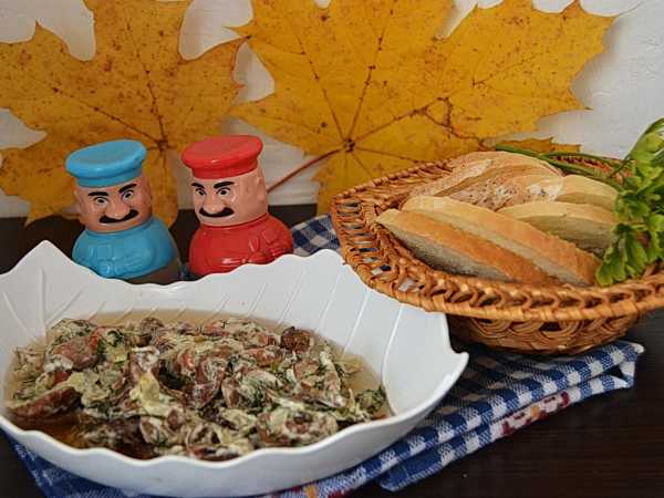 Добавляем сметану, соль и специи, перемешиваем.