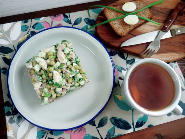Равномерно распределим начинку из лука и рыбных консервов.