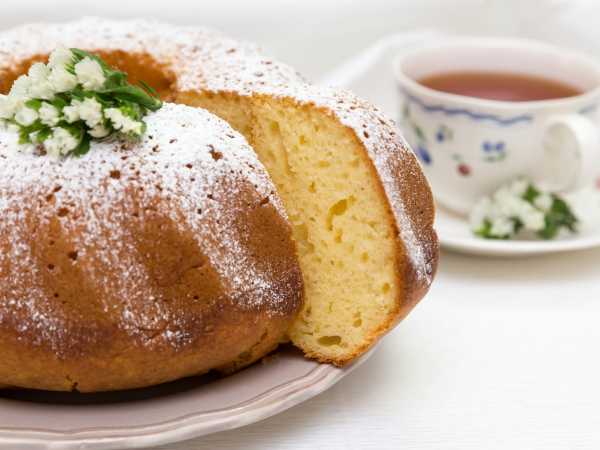 Творожный кекс с апельсиновым соком готов. Чуть остудим в форме, затем вынимаем и на решетку. При желании можно присыпать кекс сахарной пудрой.