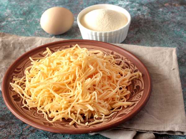 Ширину лапши также делаем по желанию – можно и тонкую, можно и широкую – все в зависимости от назначения. Нарезанную лапшу раструшиваем.