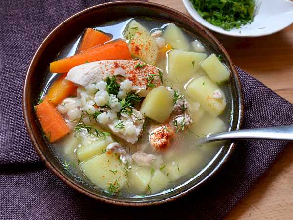 Для приготовления супа с пшеном я использовала куриный бульон, вы можете сделать его на любом мясном или овощном. Можно воспользоваться рецептом вкусного говяжьего бульона.