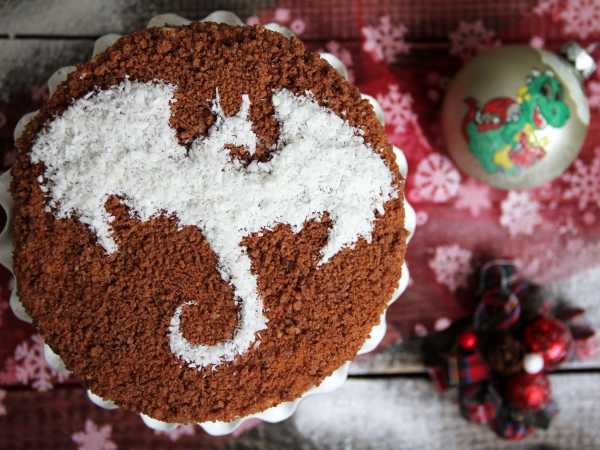 Обмажьте бока кремом и обсыпьте их крошкой из обрезков, а верх торта - шоколадной крошкой.