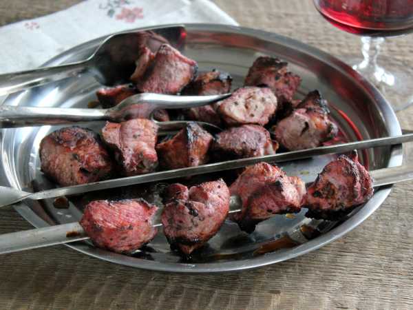 Шашлык из свинины с киви готов.