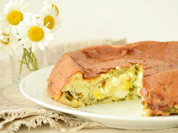 Еще один вариант вкусного блюда с черемшой и яйцом - это пирог. Пирог предлагаю приготовить из заливного теста, которое не требует длительного замеса. Итак, пирог с черемшой и яйцом...