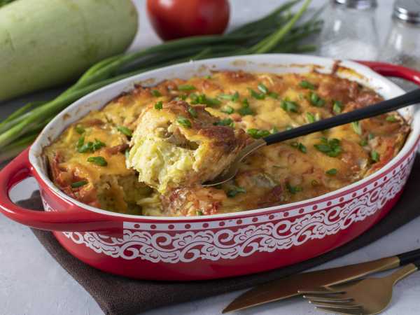 Кабачки выложите в форму для выпечки, смазанную растительным маслом. Овощи натрите в середине солью и черным молотым перцем. Выложите немного натертой моцареллы, утрамбуйте ее рукой. Потом положите грибы и помидор. Чем больше будет начинки, тем вкуснее будет закуска.