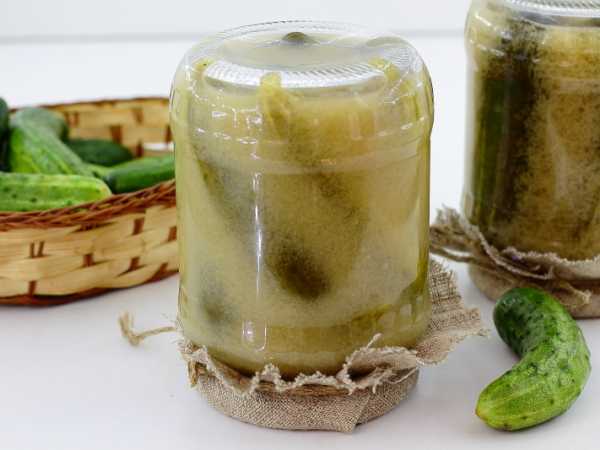Прикрыть банки с салатом из переросших огурцов прокипячёнными крышками.