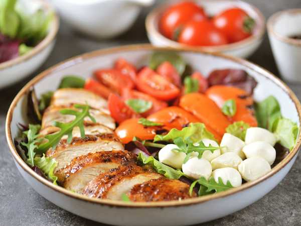 Вареное куриное мясо нарежьте соломкой или кубиками и добавьте в миску, где находится нарезанный огурец. Маринад с лука слейте.
