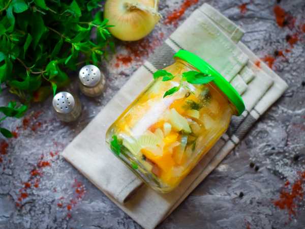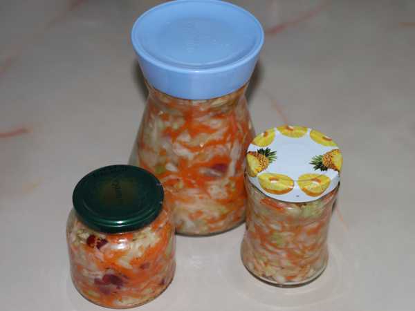 Горячий салат разложите по стерилизованным банкам и закройте стерилизованными крышками. Переверните и укутайте до остывания.
