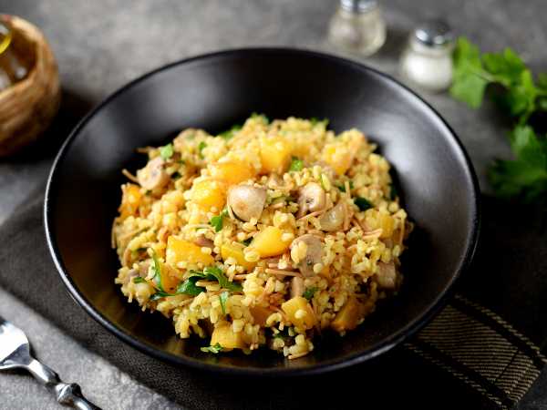 Влейте в форму около 1 стакана жидкости (воды или бульона) и отправьте курицу в разогретую до 190 град. духовку на 40-50 минут.