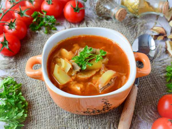 Проварите щи до мягкости капусты (хватит минут 5-6, хотя всё зависит от самой капусты), затем в кастрюлю переложите томатную зажарку.