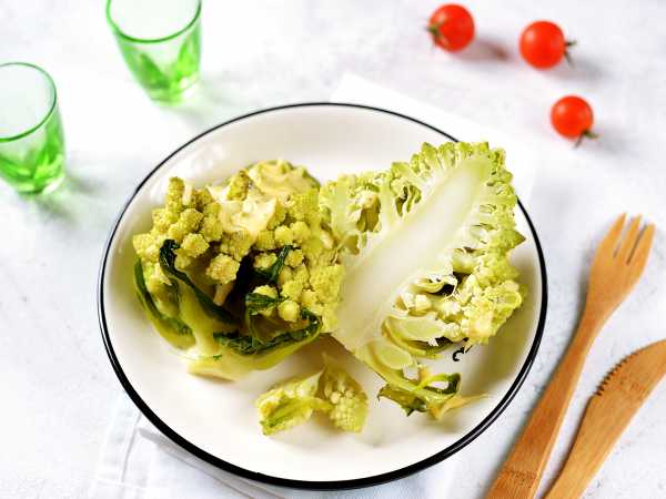 Готовую цветную капусту, запеченную в духовке с сыром, подаем к столу, украсив зеленью петрушки и перчиком чили, по желанию.