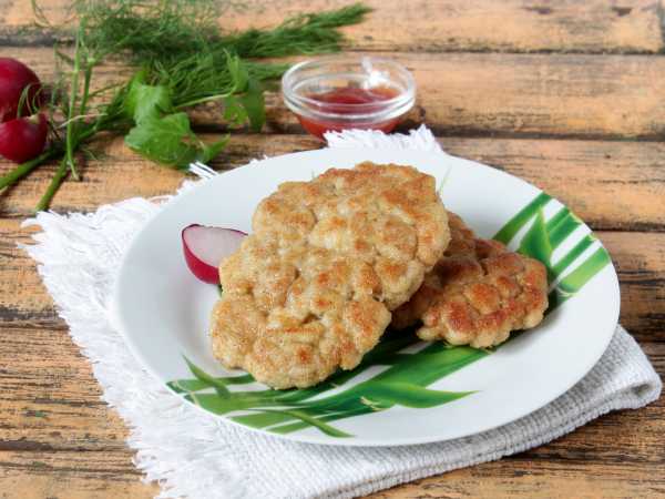 Готовую отбивную в кляре и панировочных сухарях можно подавать с гарниром, соусом, зеленью или самостоятельно.