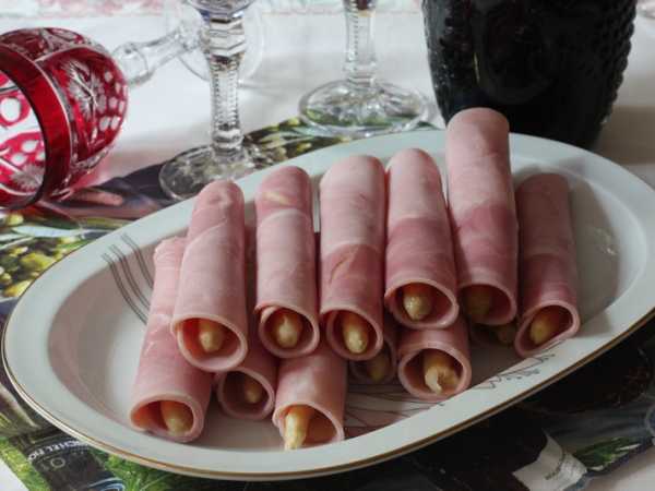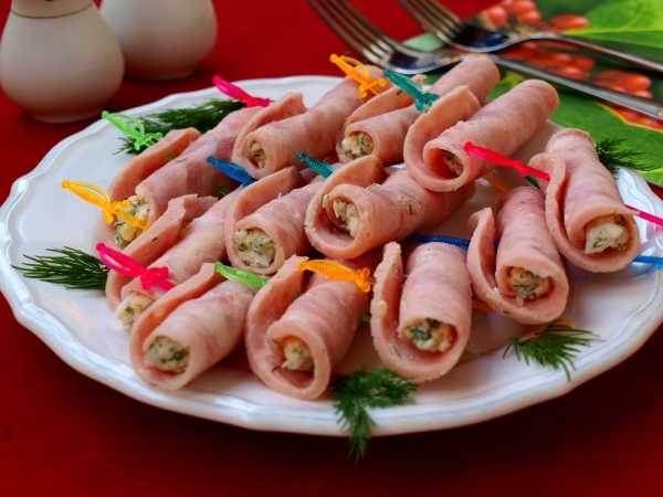 Готовые рулетики из ветчины с сыром выложить на тарелку, по желанию блюдо украсить.