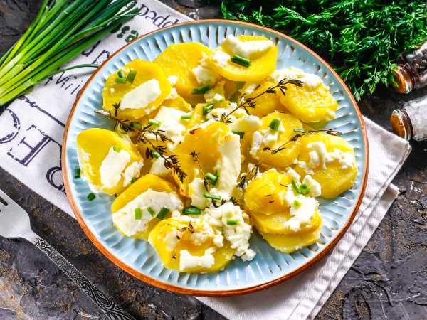 Запекайте картошку с майонезом в духовке при 180 градусах примерно 45 минут или до того момента, пока картофель не будет полностью готов (проба вилкой).