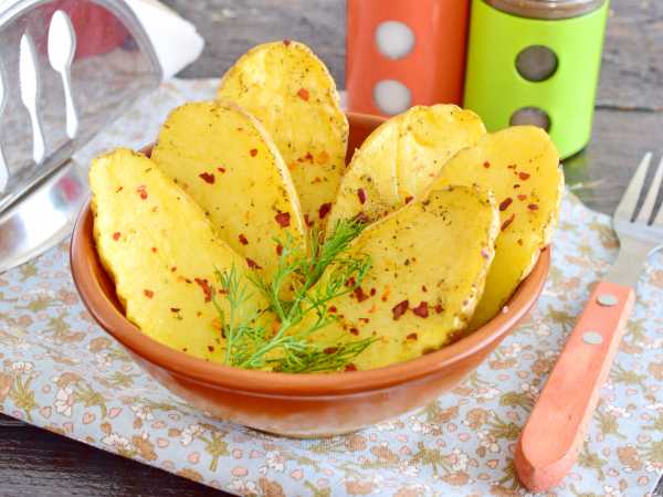 Переложите картофель в миску, посыпьте любимыми приправами и специями или специальными для картошки, солью и полейте майонезом.
