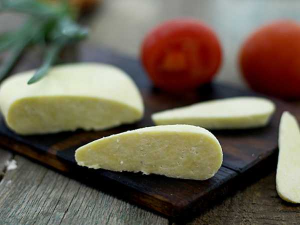 Нарежьте сыр сулугуни на кусочки желаемого размера.