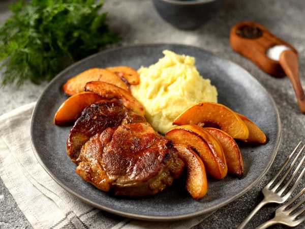 Подавать стейки из свинины можно с простыми гарнирами, в моем случае это рис и консервированный зеленый горошек.