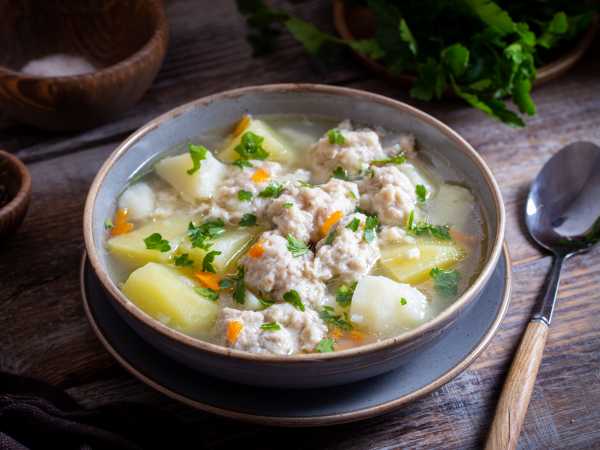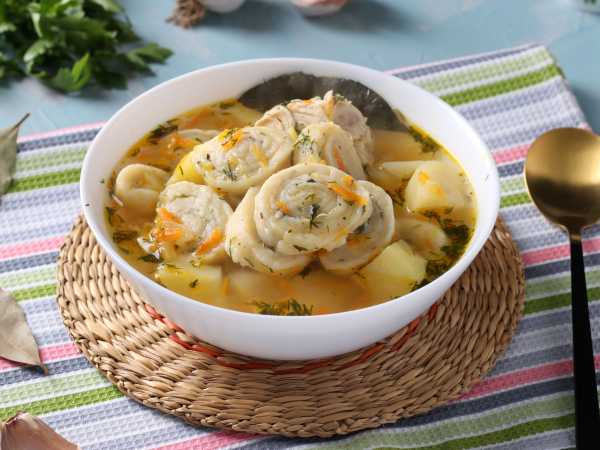 В кипящий бульон при помощи двух чайных ложек выкладываем клецки. В одну ложку набираем тесто, а при помощи другой ложки счищаем тесто с ложки, чтобы оно упало в бульон. Клецки сразу опустятся на дно, но по мере приготовления всплывут на поверхность.