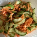 При словосочетании "азиатский салат" мне всегда представляется что-то овощное, хрустящее, исключительно сочное. Китайский салат "iiang ban huang gua" как раз из этой серии - пикантный, освежающий и очень легкий. Готовить салат проще простого, он подходит для любого застолья в китайском стиле и призван не только возбуждать аппетит, но и очищать вкусовые рецептора между сменой блюд. Особенно хорошо "iiang ban huang gua" сочетается с уткой по-пекински и китайскими тонкими блинчиками.