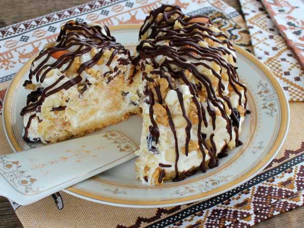 Убрать торт в холодильник на несколько часов, чтобы он пропитался. Торт «Графские развалины» со сметаной готов - можно подавать к столу.