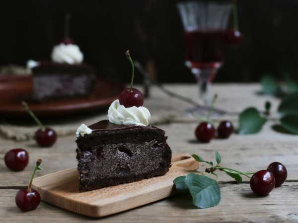 Затем кусочки шоколадного бисквита макать в сметанный крем и выкладывать горкой в хаотичном порядке. Следует немного прижимать кубики сверху, чтобы в торте не было пустот.