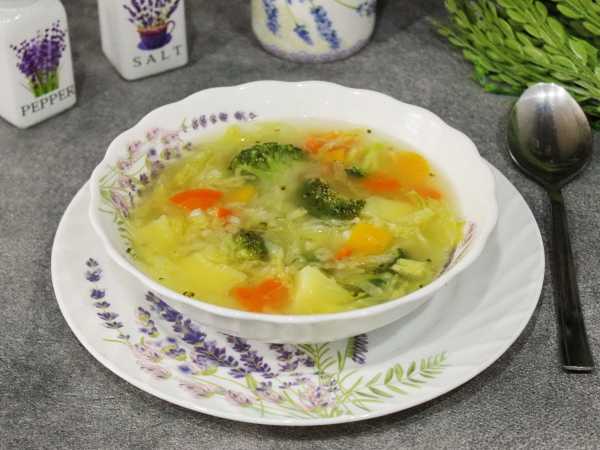 Когда куриная грудка будет готова, извлечь ее из бульона. Капусту брокколи вымыть прохладной водой и разделить на соцветия. Выложить брокколи в куриный бульон, поставить на огонь и варить 15 минут после закипания.