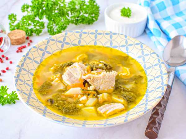 Добавьте рубленый укроп или другую зелень, прокипятите минуту и отключите огонь. Гороховый суп с копченой колбасой готов. Подайте к столу с белыми сухариками.