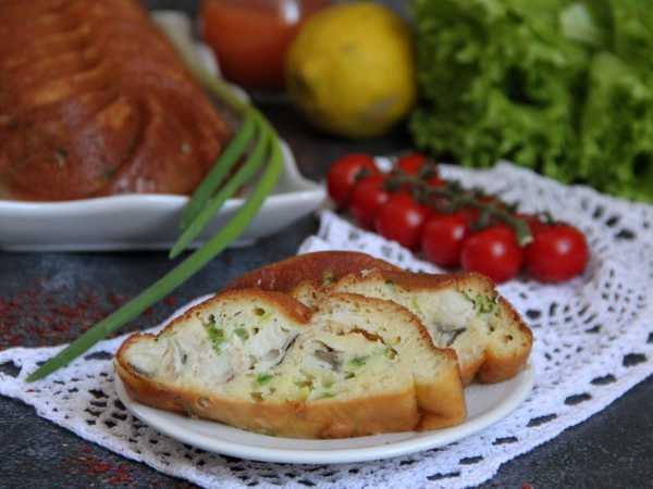 Форму застилаю пергаментом, выливаю 1/2 часть теста. Затем выкладываю начинку ровным слоем и выливаю оставшееся тесто. Помещаю в заранее разогретый до 180 градусов духовой шкаф на 40-50 минут, проверяю на сухую шпажку.