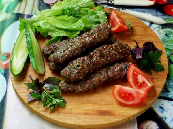 Куриному люля-кебабу можно придать классическую вытянутую форму или дополнительно нанести рисунок.