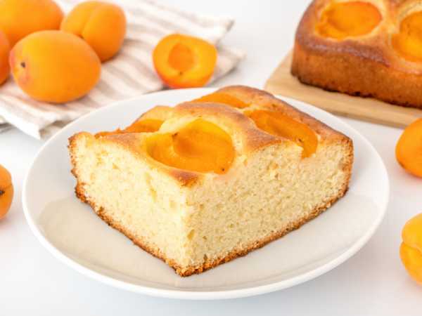 Для приготовления пирога с абрикосами в карамели заранее помоем абрикосы, обсушим, разделим на 2 части, удалив косточку.