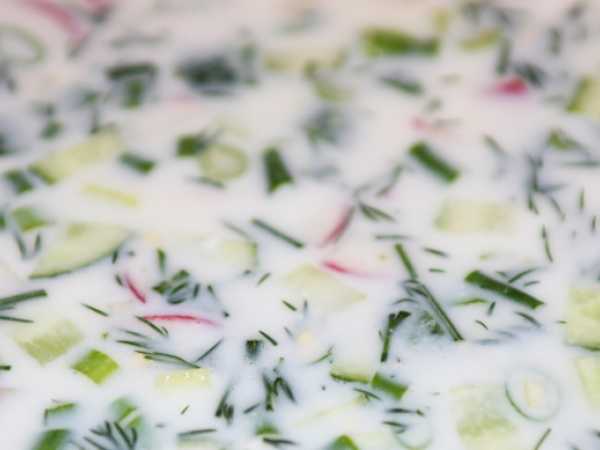 Тем временем подготовьте остальные компоненты. Мелко нарежьте укроп и зеленый лук. Огурец натрите на терке или нарежьте.