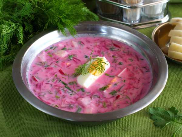 Поместите смесь в холодильник для окончательного охлаждения на 30-40 минут. А затем подавайте, дополнив каждую порцию блюда половинками или четвертинками отварного яйца, щепоткой зелени и сметаной. Традиционно, в качестве гарнира к холодному литовскому борщу подается горячий отварной картофель.