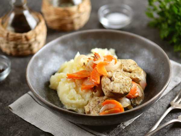Добавьте финальный слой из картофельного пюре. Пюре можно просто разровнять или придать ему форму при помощи кондитерского шприца или мешка с насадкой.