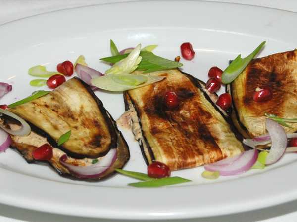 Готовые баклажаны с орехами по-грузински подаем к столу горячими или даем им настояться в холодильнике и подаем в качестве холодной закуски.