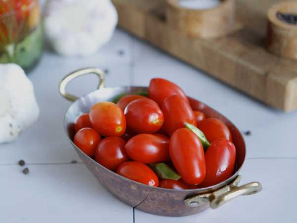 Для приготовления быстрых малосольных помидоров с чесноком и зеленью возьмите следующие продукты.