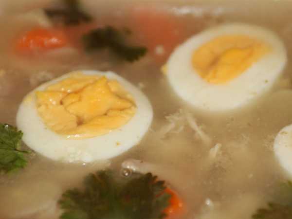 Готовый бульон процедить через мелкое сито, довести до кипения.